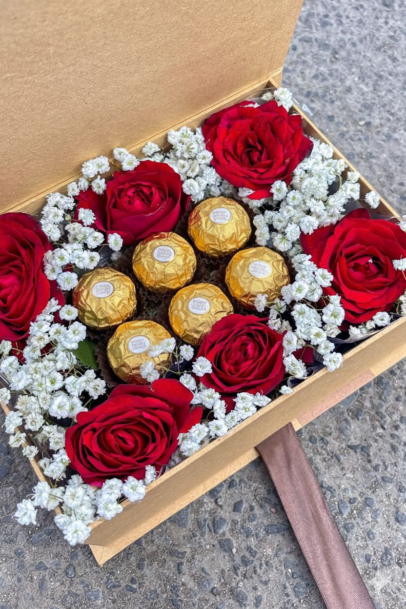 Rayakan momen Valentine dengan Red Love Box – Sweet Valentine Edition, perpaduan sempurna antara mawar merah segar, bunga baby breath putih, dan cokelat premium Ferrero Rocher yang tersusun cantik dalam box eksklusif.